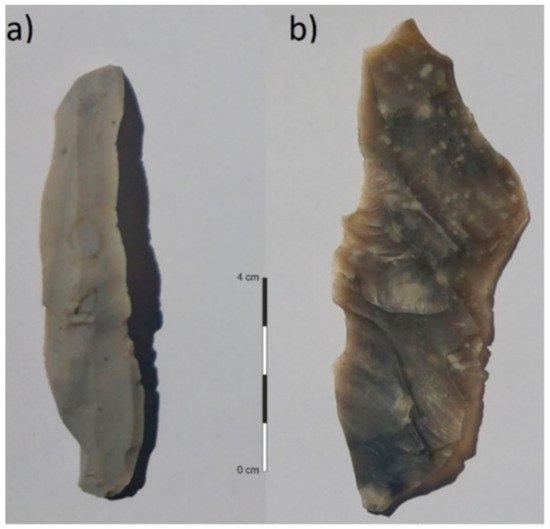 Flint blades used for the measurements. (a) Sample 1; (b) Sample 2. Photo & graphic: Tayong Boumda.