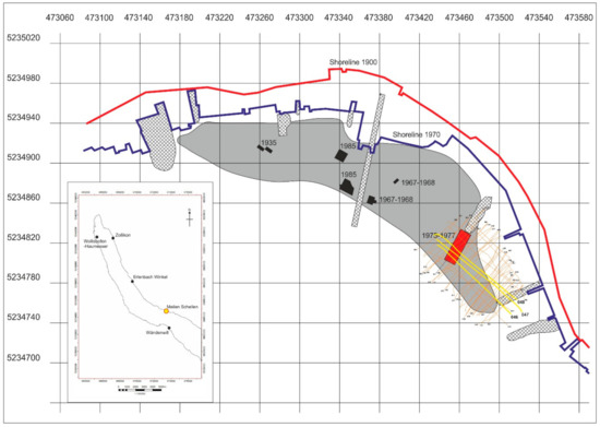 The Meilen Schellen site has attracted the attention of both amateur and professional archaeologists since the 1930s. What started as rather unsupervised artefact recovery has been replaced by professional excavation [64]. The major 1975–77 excavation of 430 m2 up to 1.2 m thick cultural deposits, dominated by Neolithic material (Cortaillod and Pfyn cultures), is of special interest, due to its extent and to the information it provides about the low density of knapped lithics. Although they were only excavated to a depth that would facilitate the dredging of a deeper passage for boats to the shore, the recorded sections suggest that the cultural deposits were excavated more or less to their bottom [64].