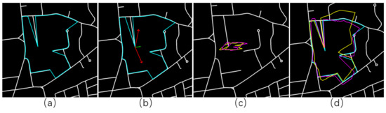 Even though there are some shape matching methods [10,11,12] that can deal with the geometric deformation to some degree, they are not suitable for the task. The main drawback of these methods is that they can only deal with shape matching between two geometric primitive sets where the geometric primitives mostly correspond. In the geolocalization, the roads in the aerial images are only a small subset of the reference road maps, and it is hard to segment the corresponding part of the reference road vector map when the transformation is unknown. It is also inefficient to divide the reference road map into overlapping tiles and compare each tile with the roads in the aerial image with such shape matching methods because such tiles have difficulty capturing the correct corresponding area of the aerial image in the reference road map when the possible variation in translation, scale, and rotation is highly uncertain.