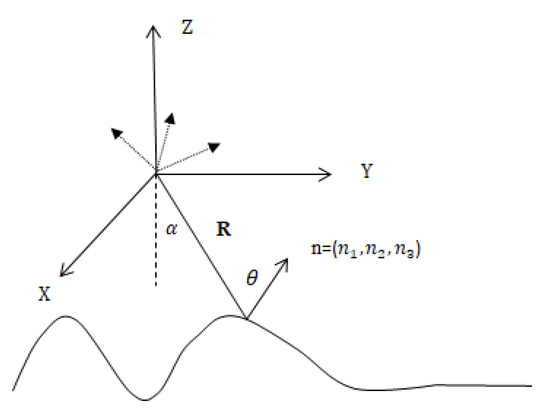 In order to obtain the surface normal corresponding to each laser footprint, the surrounding points are taken for plane fitting, and the normal vector of the corresponding point is calculated by the fitting equation. The calculation of the surface normal is as follows: