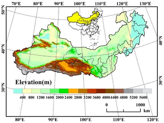 The Climate Hazards Group InfraRed Precipitation with Station data (CHIRPS) Daily data were applied in this study. The dataset incorporates satellite data at 0.05° spatial resolution with in situ station data to generate gridded precipitation time series, which can provide timely and reliable precipitation data. We obtained daily precipitation data from 1 January 2007, to 1 January 2018, and calculated the annual mean precipitation from 2007 to 2017. Then, northern China was divided into five precipitation zones according to equal intervals of 200 mm in the annual mean precipitation range: 0–200, 200–400, 400–600, 600–800, and >800 mm (Figure 2).