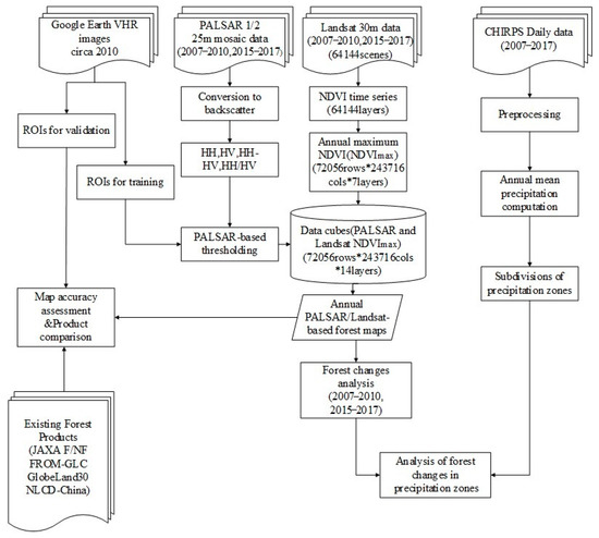 • mapping forests by integrating Landsat and PALSAR/PALSAR-2 images based on a decision tree algorithm,