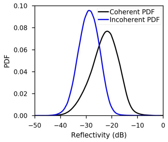 The probability density function of coherent and incoherent reflectivity derived from CYGNSS land observations in January 2018.