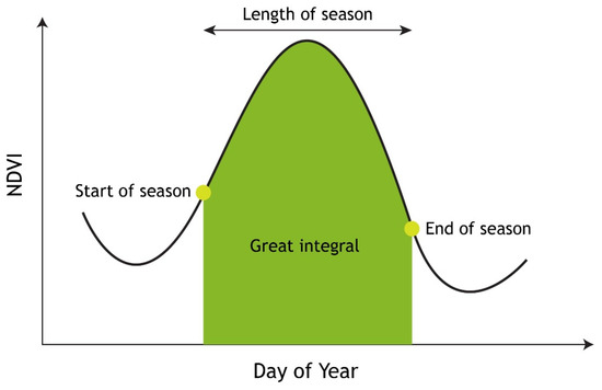 Figure 3. Phenological metrics illustration from the NDVI profile for one cropping season.