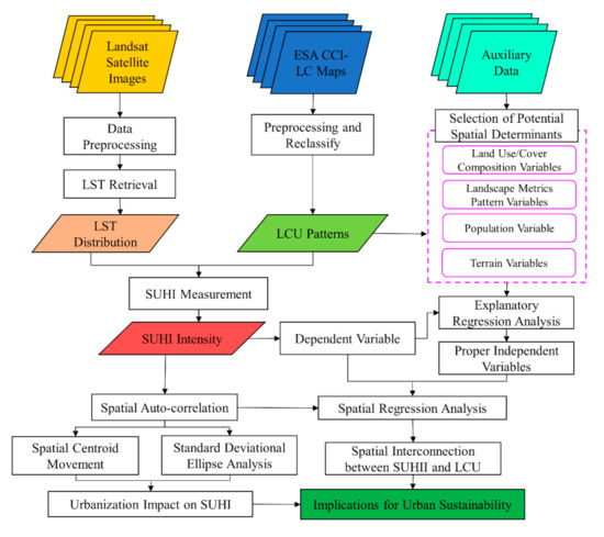 - Liu, F.; Murayama, Y. Landsat evaluation of land cover composition and its impacts on urban thermal environment: A case study on the fast-growing Shanghai Metropolitan Area. Geoinfor Geostat Overv. 2018, 2. [Google Scholar] [CrossRef]