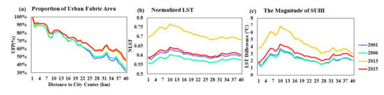 - Li, F.; Sun, W.; Yang, G.; Weng, Q. Investigating spatiotemporal patterns of surface urban heat islands in the Hangzhou Metropolitan Area, China, 2000. Remote Sens. 2019, 11, 1553. [Google Scholar] [CrossRef]