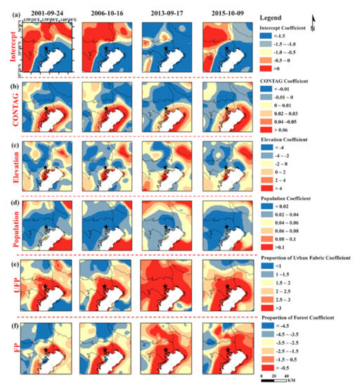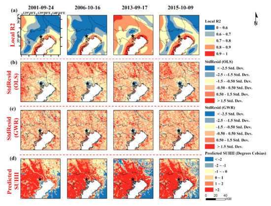 - Luo, X.; Peng, Y. Scale effects of the relationships between urban heat islands and impact factors based on a geographically-weighted regression model. Remote Sens. 2016, 8, 760. [Google Scholar] [CrossRef]