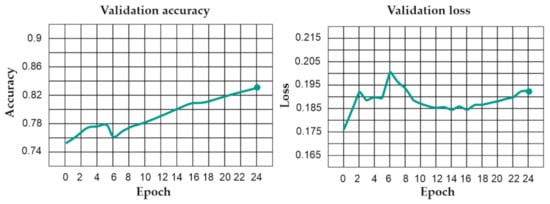 The adopted training parameters of U-Net (namely patch size: 416; number of epochs: 25; number of patches per image: 300; solid distance: 10.0; blur distance: 0; class weights: min 1, max 2; and loss weight: 0.5) resulted in a well-suited model for building extraction. As shown in Figure 6, the training validation accuracy has increased while the validation loss has decreased. Both the validation accuracy and validation loss trends indicate that the algorithm used was well optimized and can be applied for image segmentation.