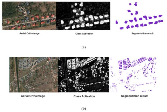 Buildings segmentation results: (a) single-family detached buildings, (b) multi-family building-blocks.