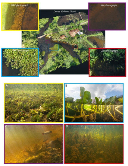 - Kalacska, M.; Lucanus, O.; Sousa, L.; Vieira, T.; Arroyo-Mora, J.P. Freshwater Fish Habitat Complexity Mapping Using Above and Underwater Structure-From-Motion Photogrammetry. Remote Sens. 2018, 10, 1912. [Google Scholar] [CrossRef]