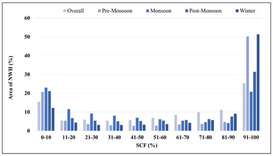 Overall (240 months) and seasonal NWH area (%) at different SCFs (%) during 2000–2019.