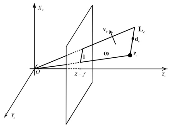 As shown in Figure 10, represents the structure in the camera coordinate system, represents the projection of the structure, and is the projection plane while is the normal vector of . Assuming the camera calibration matrix is known, the plane can be expressed as: