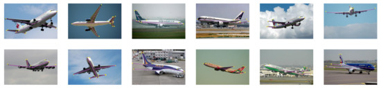 In this article, we introduce a new dataset especially for aircraft pose estimation which contains 3681 real images and 216,000 rendered images, called the APE dataset. All the images in this dataset have the size 1920 × 1080. The dataset contains most kinds of scenes that the aircraft may encounter during flight and can effectively evaluate the robustness of the methods for aircraft pose estimation. For real images, we sampled them from 79 videos captured by our cameras at different airports. These images are under different poses, such as taking off, landing, hovering, taxiing, and different weather scenes. The annotations include the focal and the pixel size of the camera, the 2D bounding box, the 6D pose, the projection of the 3D bounding box, the projection of the keypoints, the projection of the structures, and the weather scenes. We divide the images into four categories according to the weather: good weather, fog and haze, atmospheric jitter, and over exposure. Examples of real images are illustrated in Figure 11. What is more, we also generated 21,6000 rendered images for training. The rendered images were created by placing the 3D aircraft model in front of background images with the help of OpenGL. Background images were chosen from the sky images took manually under different weather scenes and road images from the KITTI dataset [48] which simulate the scenes when the aircraft is hovering in the sky and taxiing on the ground. Examples of rendered images are illustrated in Figure 11. On this dataset, we randomly select 80% of examples for training, 50 instances for validation, and the rest for testing.