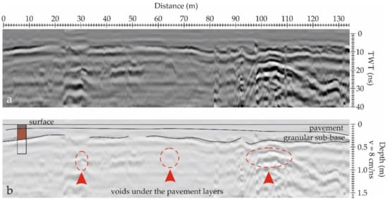 - Benedetto, A.; Pajewski, L. Civil Engineering Applications of Ground Penetrating Radar; Springer Transactions in Civil and Environmental Engineering; Springer International: New York, NY, USA, 2015. [Google Scholar] [CrossRef]