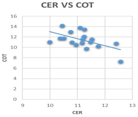 Scatter plot of CER vs. AAI and CER vs. COT over Assab in July shows the correlation plot of highlighted bold values given in Table 9.
