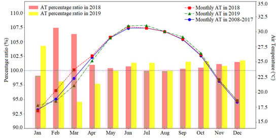 Air temperature and its percentage ratio over part I of the study area during 2018–2019.