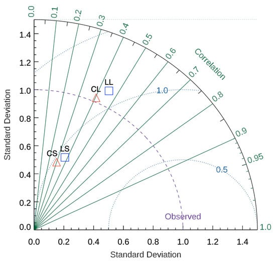 3.1. Pearson Correlation Coefficient, Anomaly Correlation, and Taylor Diagram