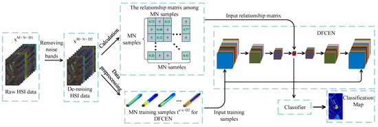 - Due to the limited training samples, inherent complexity and the presence of noise bands in HSIs, DFCEN as an unsupervised network is sensitive to input data. So, a preprocessing strategy of removing noise band is adopted, which is proved to effectively improve the DFCEN representation of HSIs.