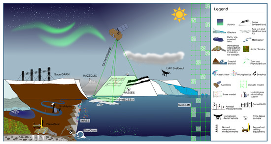 2]. Svalbard is probably one of those regions in the Arctic with the most in situ measurements spanning across various spheres; still, there are massive gaps spatially distributed in various regions. Such data gaps can be filled using frequent satellite-based acquisitions, new product generation using EO/RS/GI, and integration of ground-based, airborne, and satellite-based measurements.