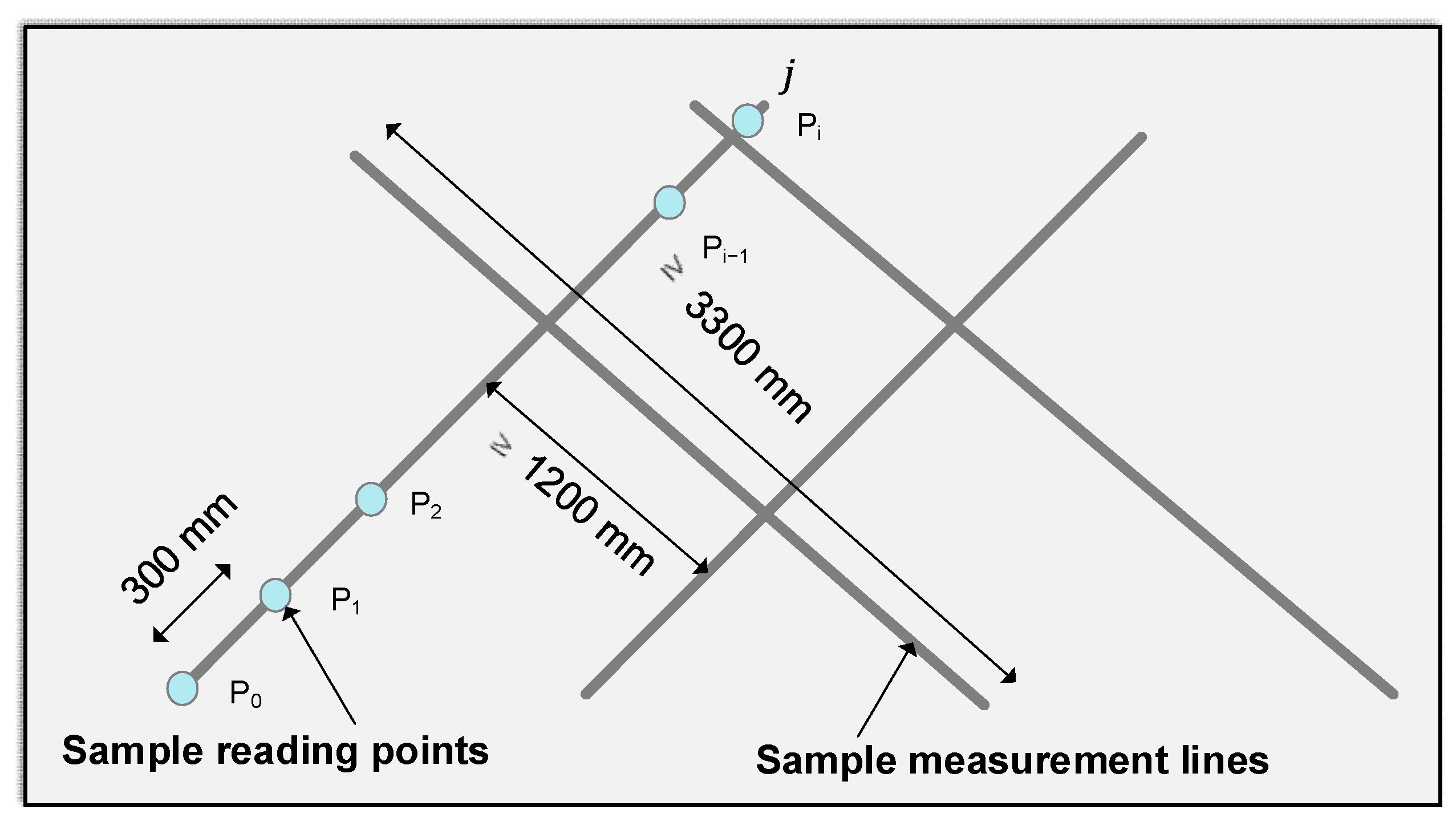 - American Society for Testing (ASTM). ASTM E 1155-96-Standard Test Method for Determining FF Floor Flatness and FL Floor Levelness Numbers; ASTM: West Conshohocken, PA, USA, 2008. [Google Scholar]