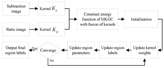 Jia, L.; Zhang, T.; Fang, J.; Dong, F. Multiple Kernel Graph Cut for SAR Image Change Detection. Remote Sens. 2021, 13, 725. https://doi.org/10.3390/rs13040725