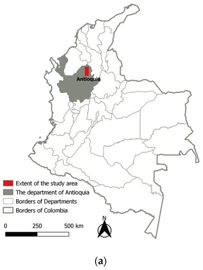 A small-scale placer mining activity is considered formal/legal when the operator obtains a mining title and a program of works (Programa de Trabajos y Obras—PTO). Accordingly, the small-scale mining activities are required to be less than 150 hectares and need strict measures of land recovery [1]. Unfortunately, it is estimated that more than 70% of the gold production in Colombia is extracted from informal small- and medium-scale activities where the operators have not obtained legal permissions to do so [7,8,9]. This situation has worsened with the increase in gold prices since the year 2000. Despite the major environmental and social impacts of these activities, the fact remains that traditional land surveys are very challenging for such remote and harsh areas as they lack suitable spatial or temporal coverage. Earth observation techniques can be an improved method to detect, map, and monitor these extractive activities and assess their impacts [5,10,11,12].