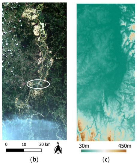 - Nazarova, T.; Martin, P.; Giuliani, G. Monitoring Vegetation Change in the Presence of High Cloud Cover with Sentinel-2 in a Lowland Tropical Forest Region in Brazil. Remote. Sens. 2020, 12, 1829. [Google Scholar] [CrossRef]