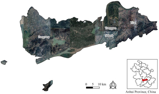 Tongling is located in south-central Anhui Province, China. It consists of three municipal districts and one county, covering approximately 3008 square kilometers (Figure 3). Located in the copper-iron metallogenic belt of the Yangtze River, Tongling is rich in mineral resources. There are more than 30 kinds of rare metal minerals in the territory. Copper, gold, pyrite and limestone for cement are four dominant minerals [55]. However, many tailings generated after mining and smelting are stored in tailings ponds, which have become the primary source of heavy metal pollution in the environmental system of Tongling [56].