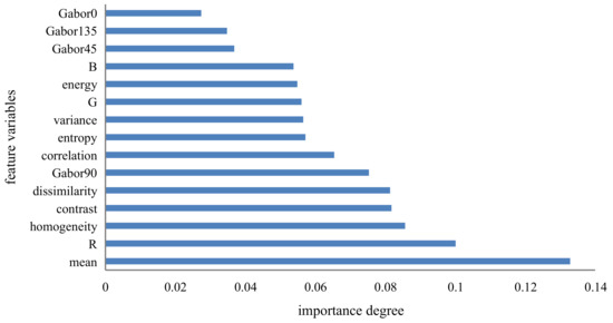 Furthermore, by conducting random forest feature optimization, we found that the mean texture feature and R-band feature were dominant in the extraction. The optimal features that were selected included spectral bands, GLCM texture and Gabor texture. The results mean that the appropriate combination of spectral and texture features played an important role in improving tailings pond extraction accuracy. In addition, the highest OOB accuracy of 92.03% was obtained when the top 12 feature variables were selected. Then, the OOB accuracy tended to decline (Figure 7). The reason resulting this phenomenon may be that there is a specific correlation among multiple features adopted in this study. The participation of all features in classification would lead to information redundancy, thus reducing classification accuracy [64].
