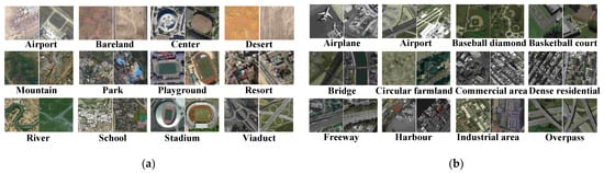 - Xia, G.S.; Hu, J.; Hu, F.; Shi, B.; Bai, X.; Zhong, Y.; Zhang, L.; Lu, X. AID: A benchmark data set for performance evaluation of aerial scene classification. IEEE Trans. Geosci. Remote Sens. 2017, 55, 3965–3981. [Google Scholar] [CrossRef]
