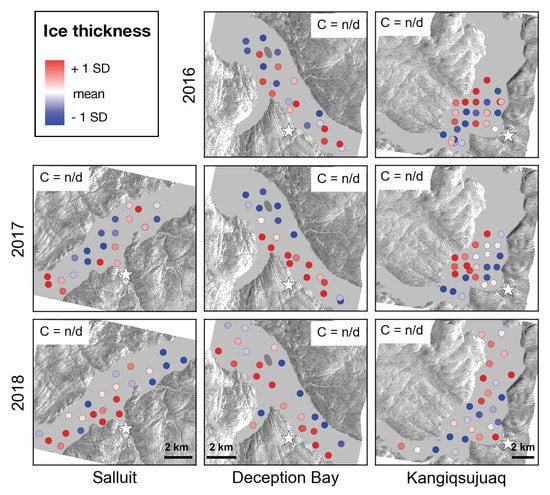- Gauthier, Y.; Dufour-Beauséjour, S.; Poulin, J.; Bernier, M. ICE Monitoring in Deception Bay: Progress report 2016–2018; Institut National de la Recherche Scientifique: Quebec City, QC, Canada, 2018; p. 65, Number 1792; Available online: http://espace.inrs.ca/id/eprint/7538/ (accessed on 12 February 2021).