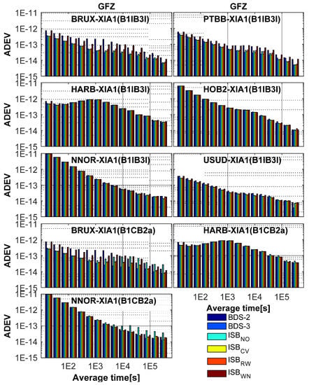 4.2. Precise Time and Frequency Transfer Using Different ISB Stochastic Models