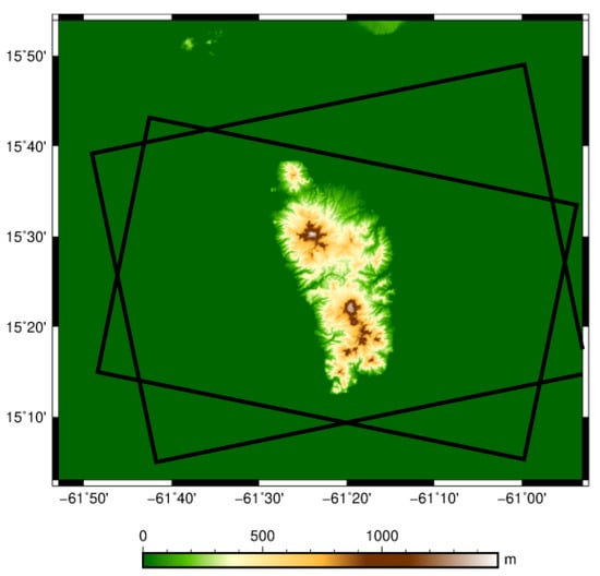 Satellite synthetic aperture radar (SAR) sensors are functional in all weather conditions and are able to penetrate clouds. They can also provide large spatial and frequent temporal coverage at high resolution. These attributes, along with the ability to measure changes in phase between acquisitions, have allowed SAR data to be used extensively in the mapping and monitoring of landslides ([20,21,22,23,24,25,26,27,28,29] and many others). In tropical environments similar to Dominica, SAR data have been shown to be successful in mapping and tracking slow-moving landslides for risk detection and disaster management applications [30,31,32,33]. Refs. [30,31], for example, applied the Differential Interferometric Synthetic Aperture Radar (DInSAR) technique to satellite SAR data over active landslide areas within Indonesia. Similar to Dominica, Indonesia is a tropical environment vulnerable to landslides due to its mountainous landscape, loose soil, and heavy rainfall. Ref. [30] focused their study on a massive rock avalanche induced by significant rainfall, while [31] concentrated on a number of predominantly slow-moving translational and slump slides that occurred in rock layers and unconsolidated materials, respectively. Ref. [30] was able to observe surface displacement prior to the catastrophic slope failure, while [31] was able to identify active landslides and monitor their deformation rates. DInSAR-derived data, such as the detection of deformation prior to massive slope failure, were recommended to be used as an added capability in landslide susceptibility mapping. In addition, the identification and monitoring of slow-moving slides from DInSAR was determined to be suitable for use in landslide hazard mapping.