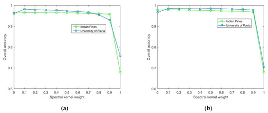 OA values under different spectral kernel weights. (a) WASCK; (b) MWASCK.