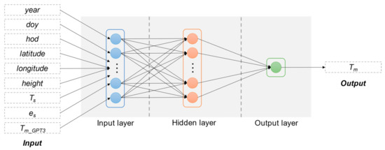 Some studies have been carried out to estimate Tm using the machine learning approaches. Literature study [18] first tried to build Tm models using backpropagation neural network (BPNN) approach. This neural-network-based model achieves an accuracy of 3.3 K and outperforms the models developed with conventional approaches. Literature study [19] used the BPNN approach to develop a new generation of Tm model, which is designed to provide highly accurate Tm estimates from the surface to almost the top of the troposphere. Literature study [20] introduced sparse kernel learning into the modeling of Tm and obtained high-accuracy and high-temporal-resolution Tm estimates. Literature study [21] established Tm models by adopting the BPNN approach and carefully tested the performances of the neural network models with different neuron numbers in the hidden layer and different input variables.