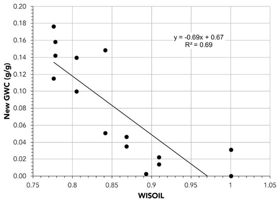 Ground control sampling point water content versus ground-measured WISOIL index. p < 0.001.