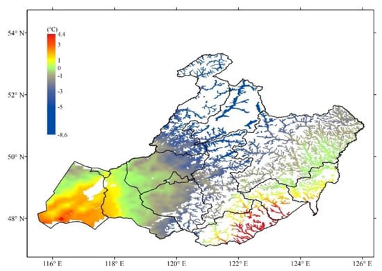 - Wang, H.Q. Temporal and Spatial Variation Characteristics of Winter Temperature in Hulunbuir of Inner Mongolia during 1970–2013. J. Arid Meteorol. 2016, 34, 276–281. [Google Scholar] [CrossRef]