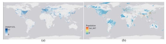 - Sutton, P.; Roberts, D.; Elvidge, C.; Baugh, K. Census from Heaven: An Estimate of the Global Human Population Using Night-Time Satellite Imagery. Int. J. Remote Sens. 2001, 22, 3061–3076. [Google Scholar] [CrossRef]