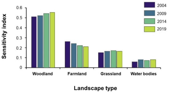 Changes on the sensitivity index for the landscape types from 2004 to 2019.