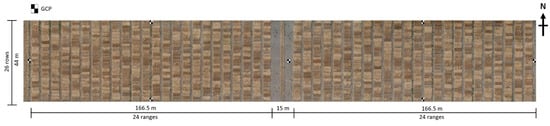 Images were imported into Pix4Dmapper version 4.4.12 (Pix4D, Prilly, Switzerland) to generate an orthomosaic image, with the coordinates of the GCPs used for geo-rectification. The resulting orthomosaic had a ground sampling distance (GSD) of 0.32 cm/pixel. Individual plot images were clipped and saved in TIFF format from the orthomosaic using a field plot map with polygons corresponding to the experimental plot dimension of 5 m × 1 m in ArcGIS Pro version 2.5.1 (Esri, Redlands, CA, USA).