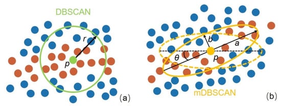 2.4. Current Density-Based Spatial Clustering of Applications with Noise (DBSCAN) Algorithm and Its Modification