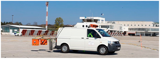 Measurement vehicle at the Pula Airport with Ground-penetrating radar (GPR) antennas.