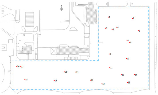 Twenty-two cores were extracted to determine the thickness of the asphalt layers, seven of which were 300 mm in diameter and 15 of which were 100 mm in diameter. The positions of the cores were recorded by GPS and are shown in Figure 7.