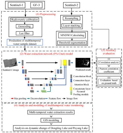 - Chen, L.; Zhang, P.; Xing, J.; Li, Z.; Xing, X.; Zhihui, Y. A Multi-scale Deep Neural Network for Water Detection from SAR Images in the Mountainous Areas. Remote Sens. 2020, 12, 3205. [Google Scholar] [CrossRef]