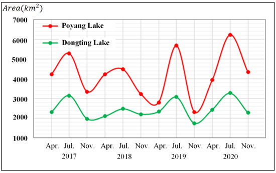 Li, J.; Wang, C.; Xu, L.; Wu, F.; Zhang, H.; Zhang, B. Multitemporal Water Extraction of Dongting Lake and Poyang Lake Based on an Automatic Water Extraction and Dynamic Monitoring Framework. Remote Sens. 2021, 13, 865. https://doi.org/10.3390/rs13050865