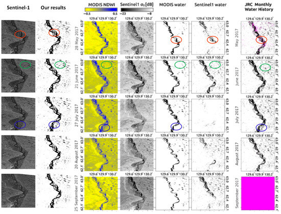 - Bioresita, F.; Puissant, A.; Stumpf, A.; Malet, J.P. A Method for Automatic and Rapid Mapping of Water Surfaces from Sentinel-1 Imagery. Remote Sens. 2018, 10, 217. [Google Scholar] [CrossRef]