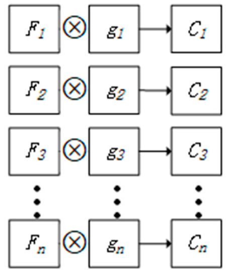 In Figure 3, assuming Fi (i = 1, 2 … n) represent the ith channel of the input, gi (i = 1, 2 … n) is the Gabor kernel function, then the output feature channel Ci (i = 1, 2 … n) of the Gabor convolutional layer can be expressed as: