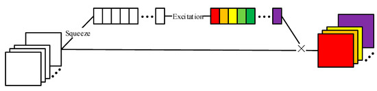 The principle of the channel attention mechanism is shown in Figure 4, which is divided into three parts: squeeze, excitation, and scale. Firstly, the output signal of each channel is considered, the global spatial information is compressed into channel descriptors, and the global average pooling is used to generate the statistics of each channel. It can be expressed by the mathematical formula: