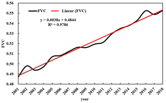 The variation trend of subtropical FVC from 2001 to 2018.