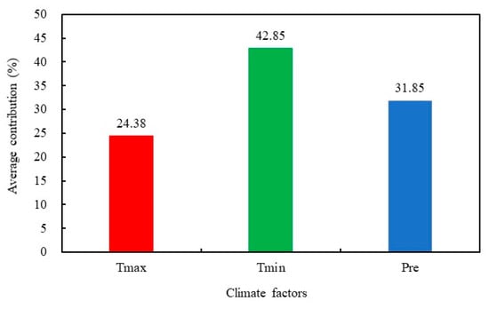 The average relative contributions of Tmax, Tmin, and Pre to FVC variations in the subtropical region.